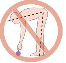 No debe flexionar el tronco hacia adelante, evite flexionar el tronco como en la foto para recoger objetos del suelo, o inclinarse hacia adelante para atarse los cordones de los zapatos. Al hacerlo provocamos una flexión de cadera excesiva por encima de los 90º y es fácil que la prótesis se luxe.