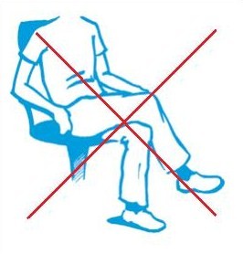 Evitar sentarse en sillas bajas durante las primeras semanas, las rodillas nunca deben quedar por encima de la cadera. Para ello siempre se deben utilizar sillas altas o colocar un cojín debajo del culo de manera que la cadera quede lo más alta posible.