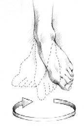 Al girar, debe hacerlo en bloque, es decir, girar todo el cuerpo a la vez, «como un robot». NO debe girar haciendo pivote, es decir, girar las piernas y dejar el tronco fijo, o al contrario, girar el tronco dejando las piernas fijas en el suelo. Para que todo el mundo lo entienda, no se deben hacer giros sobre sus pies sino ir girando poco a poco todo el cuerpo a la vez.