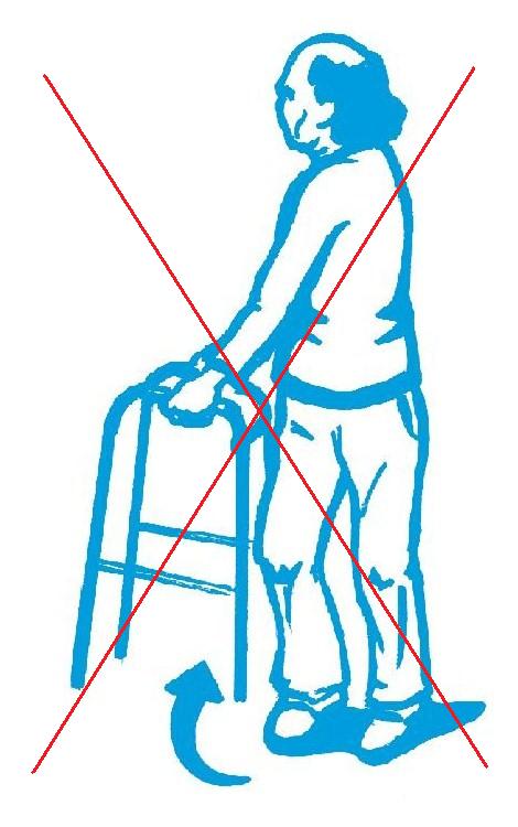 2. Al empezar a caminar, el primer paso SIEMPRE se dará con la pierna OPERADA, ya que de esta forma, la pierna sana es la que aguanta todo el peso del cuerpo mientras damos el paso, después avanzará la pierna sana.